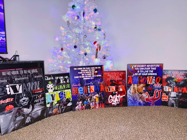 These custom posters were designed for my siblings, each uniquely tailored around their personality, interests, values, and goals. I created each design based on a set of questions they answered, including favorite colors, music, hobbies, inspirations, and meaningful quotes. The final posters combine typography, imagery, and symbolism to reflect their individuality and personal story.